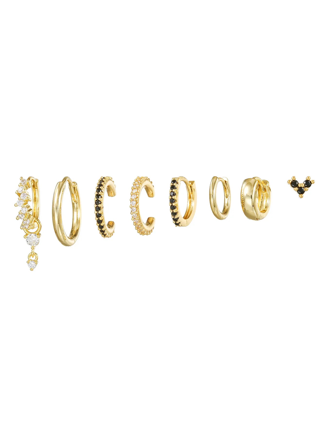 Sleek and timeless, our B&W Piercing Set mixes black and white accents with clean gold tones for a cool and minimalist vibe. It’s simple, chic and super easy to style with anything in your closet.
