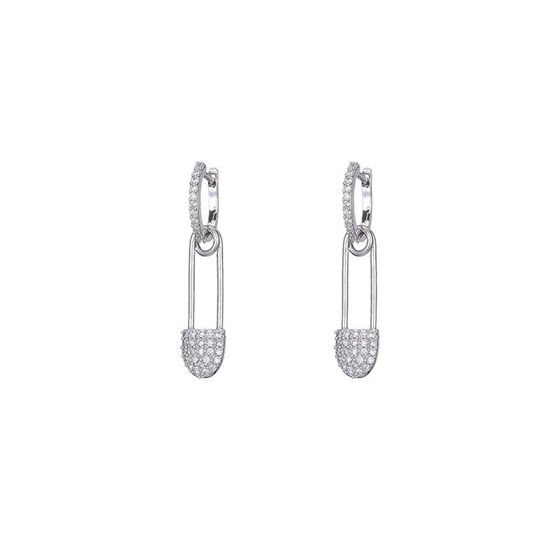Bold meets glam with the James Charles Earrings, featuring a modern safety-pin design in a sleek silver finish, fully embellished with sparkling crystals. These statement earrings blend edgy street style with a polished shine, making them the perfect standout piece for fashion-forward looks.